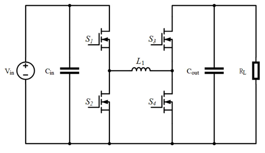 四开关BuckBoost变换器,是一种兼具升降压能力的非隔离DCDC变换器,通过不同的开关组合导通控制实现电压变换,根据设计不同具有多种控制模式,在输入输出变化时能够平顺过渡切换,同时保持较高效率。