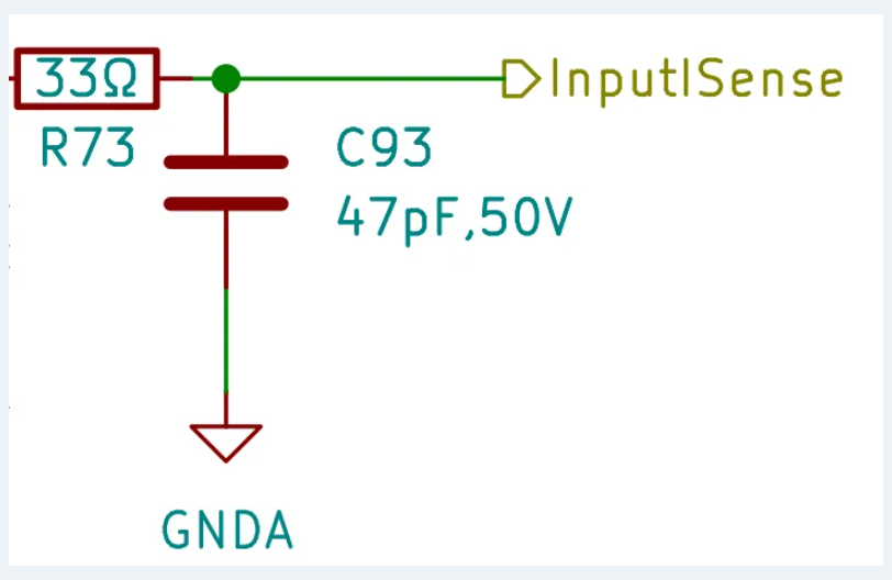 考虑到设计指标的20A电流输出能力、封装热耗散功率和采样放大器提供的放大倍数,采样电阻选用了1mΩ 5W 2725/2726封装的锰铜电阻,采样放大器采用了1.1MHz小信号带宽、50V/V增益的INA241A3,尽可能提高了电流采样的模拟带宽以适配500kHz的较高开关频率。