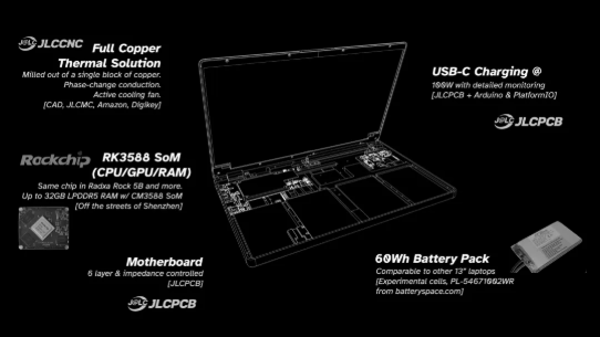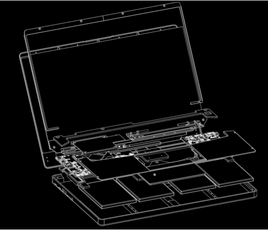 在最后组装时,我混合使用了 JLC 的尼龙粉末选择性激光烧结 (SLS) 和 FDM 打印 PA6-CF 来制作较小的结构部件。将所有部件与哑光黑 CNC 铝机箱组装在一起,我终于拥有了自己的笔记本电脑。