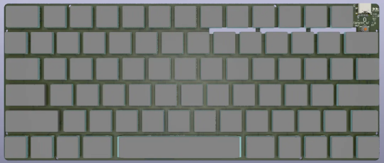 从左上方起逆时针方向:键盘侧面轮廓、键盘打字、触控板、背面 1 毫米电池、nRF52840 SoC 区域