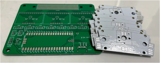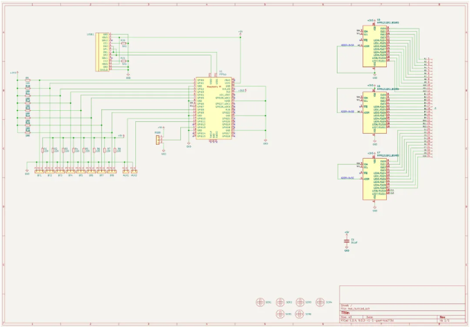 和 Production\PCB\mai_button_v*.zip)下单,常规 FR-4 板,厚度 1.6mm。你需要 1x io PCB 和 8x 按钮 PCBs 来构建一个 Mai Pico con。