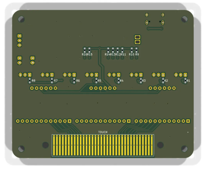 因为我们使用的是 MPR121 模块,而不是芯片,所以 U5、U6、U7 区域的离散组件留空(新版里已经移除)。