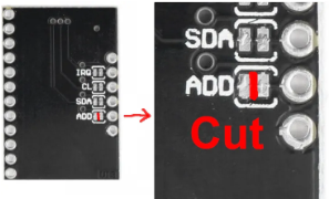 在将 MP121 模块焊接到主 PCB 板之前,记得用小刀切断 ADDR 和 GND 之间的微小连线,注意绝对不要切过头。