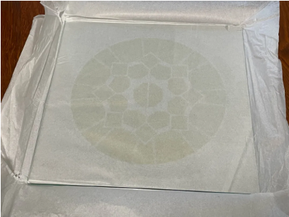 不要在 ITO 玻璃的走线上贴胶带,你可以在某个角度光线下看到 ITO 的走线。
