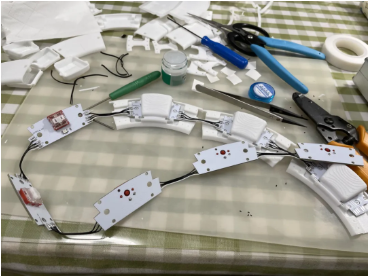将 3D 打印的部件和 PCBs 组装在一起。