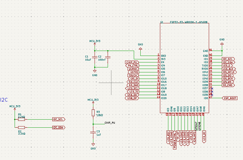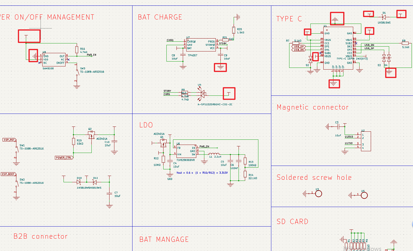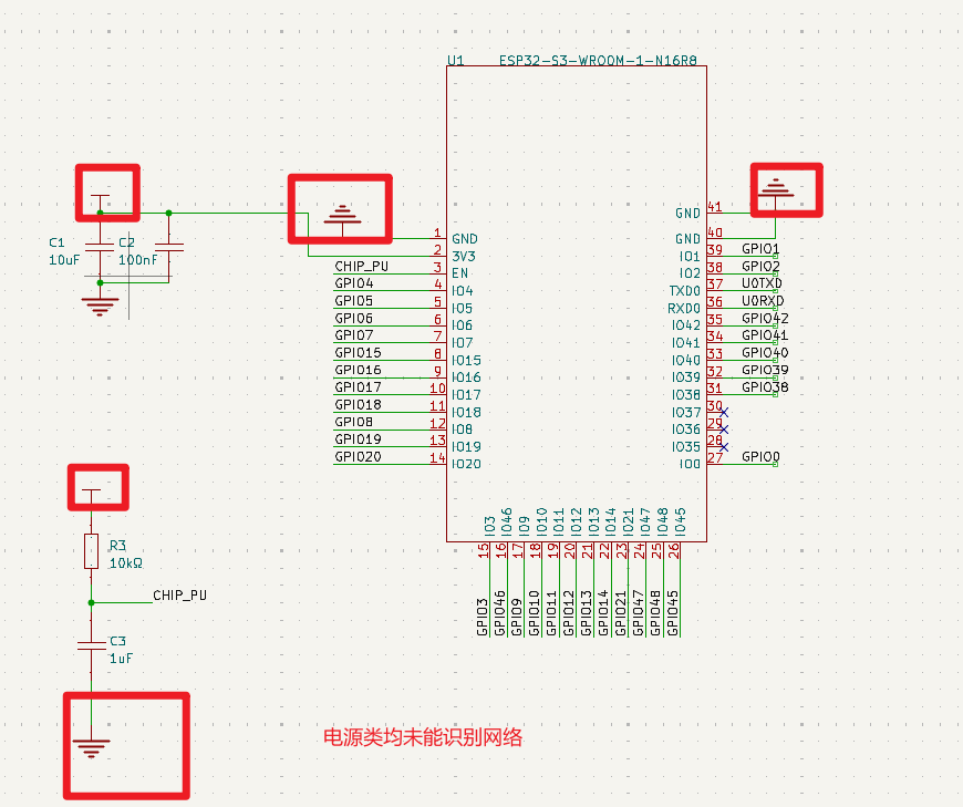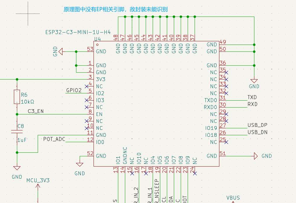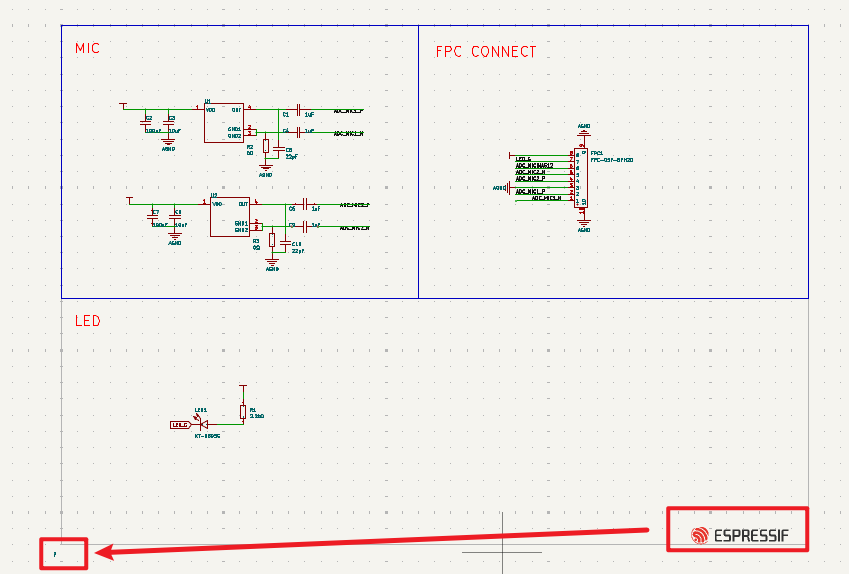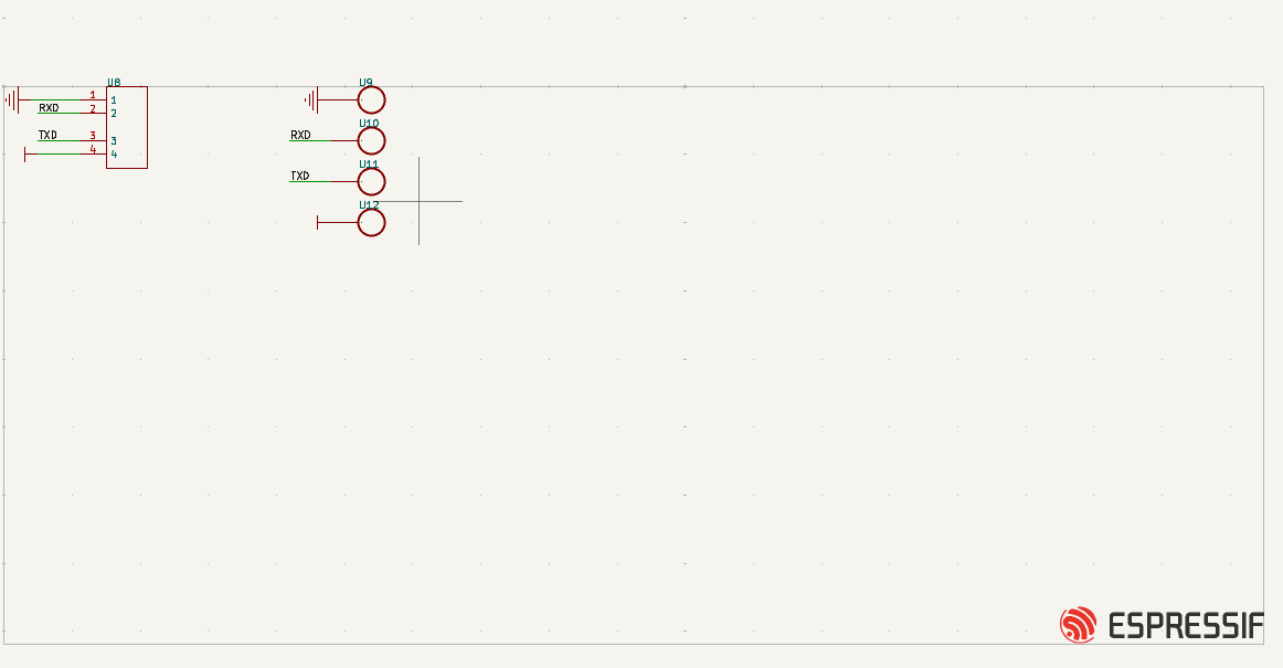 原理图中的乐鑫LOGO导入KICAD中存在小BUG,故将原理图中LOGO删除了,不影响PCB中的乐鑫丝印标识。
