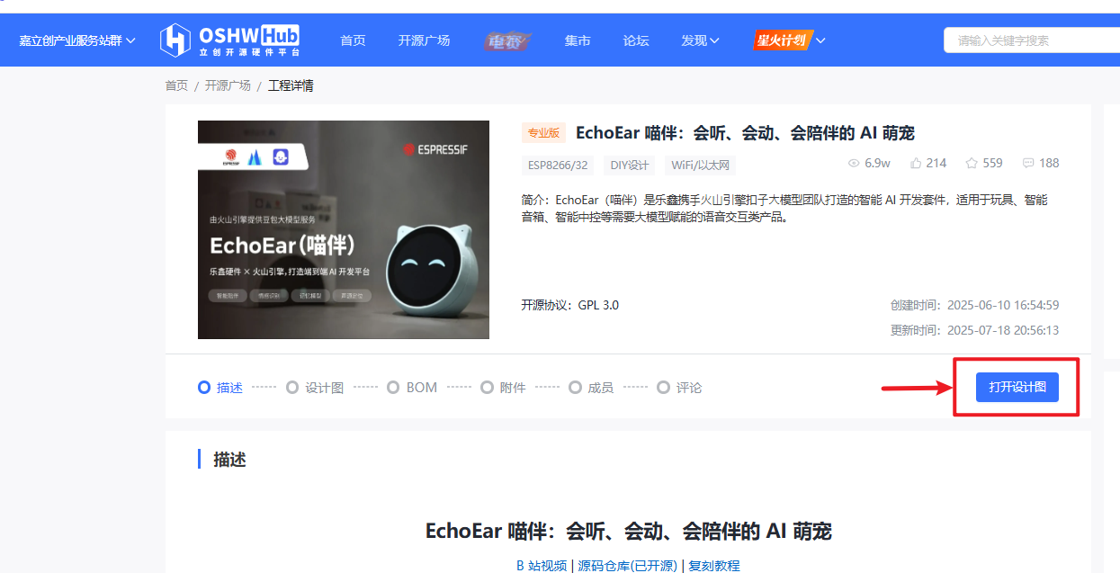 首先从立创上面下载原始工程文件。直接点击“打开设计图”,进入了立创EDA在线编辑平台。