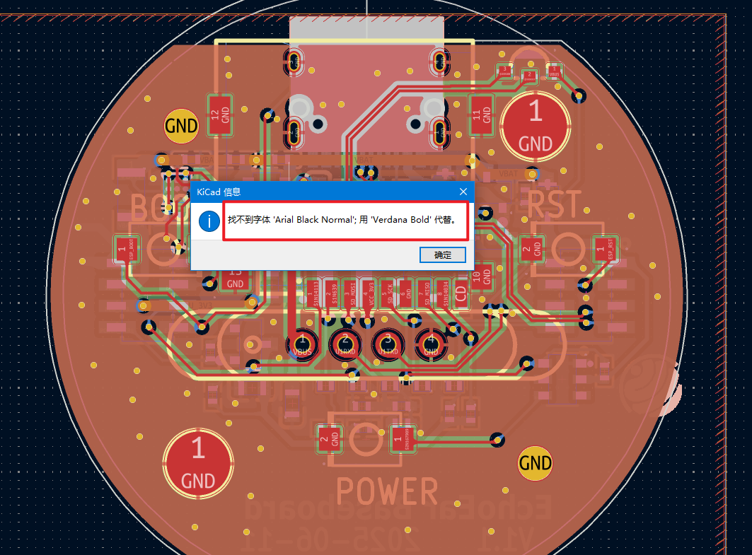 导入KICAD后遇到的第一个问题就是PCB字体变更,原因是KICAD中缺少立创的字体,不过影响不大,有强迫症的小伙伴可以在KICAD的“电路板设置”界面选择“嵌入字体”即可。