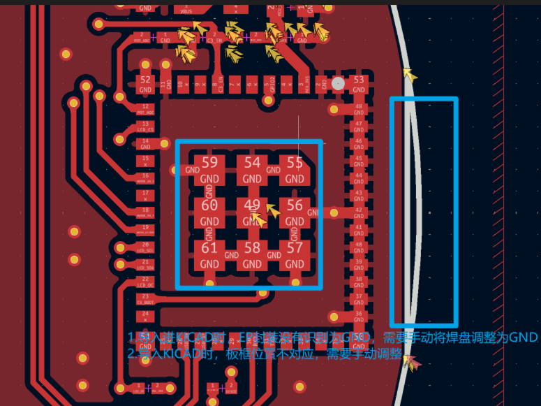 原理图中没有EPAD相关引脚,导入后PCB中焊盘没有识别为GND,需要手动调整。
