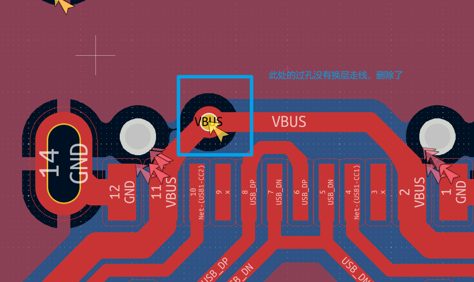 同第二块板子一样,由于KICAD不能像立创EDA那样允许使用短接符将两个不同网络连接在一起且不报错,故删除短接符并重新命名了网络名。