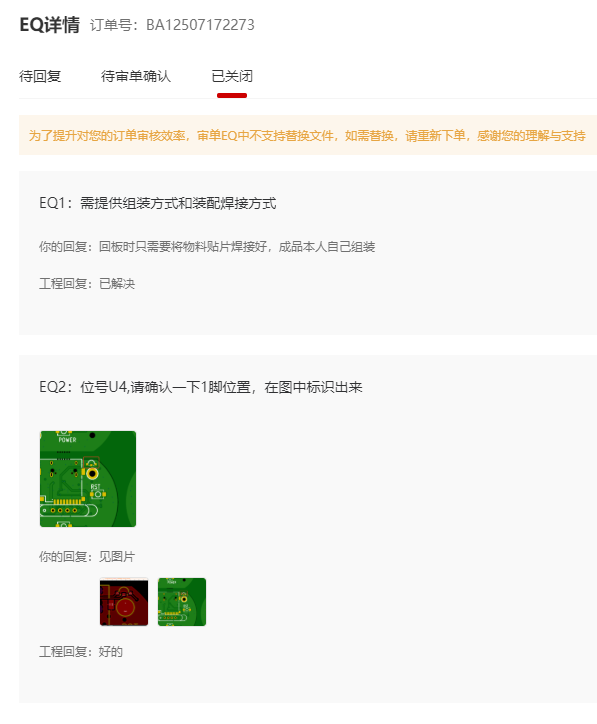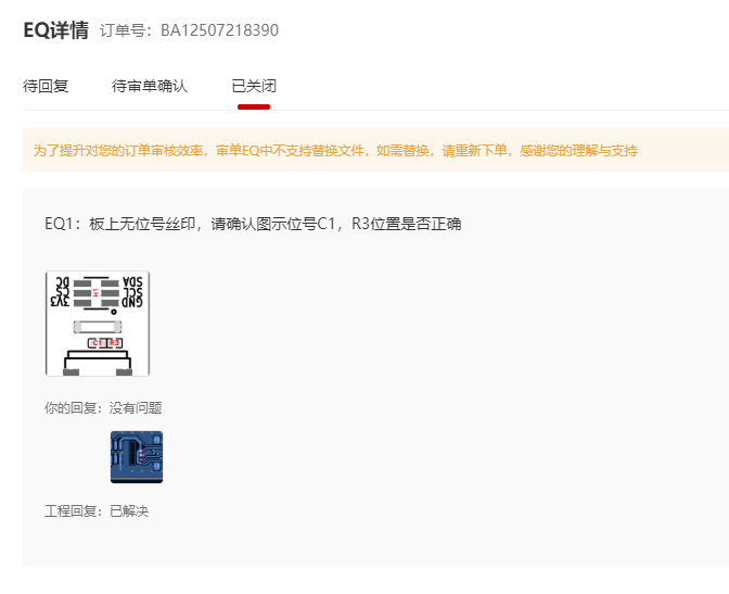 由于未标注器件1脚标识,需要确认,答复了一次EQ