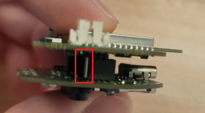 首先就是上下板子连接时要注意朝向不能反(这个不容易犯错),还有就是确保每一个pin脚都正确插入排母中(这个很容易犯错),如下图所示,尽管一侧连接对了,但是很有可能另一侧就露了一排引脚在外面,导致程序不能正确执行。