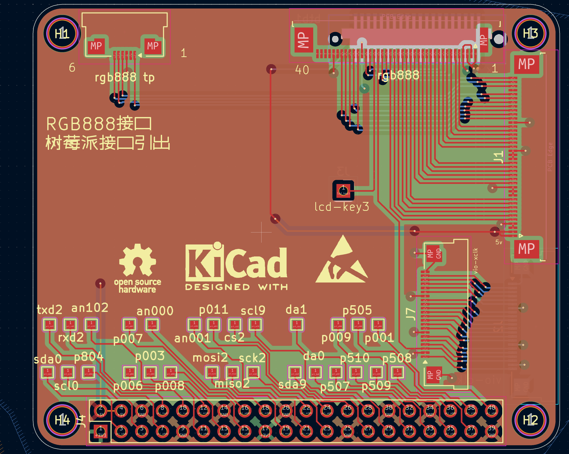 引出40针的rgb数据接口。