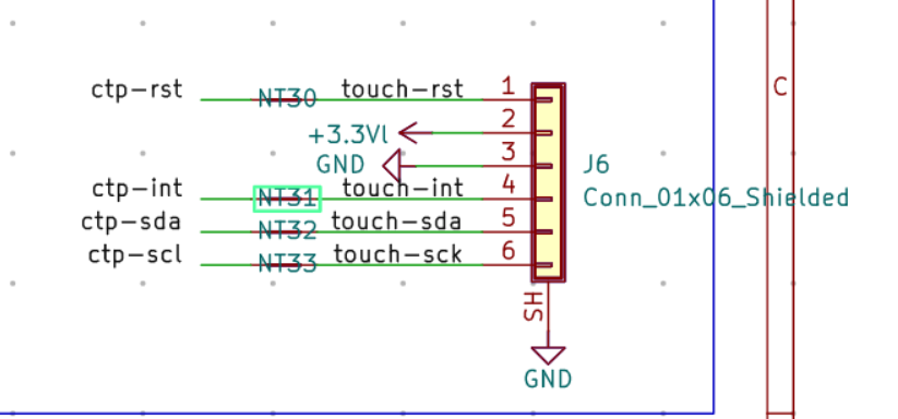 故增加一个扩展板,实现rgb888的40pin接口,一个独立的6pin触摸接口。