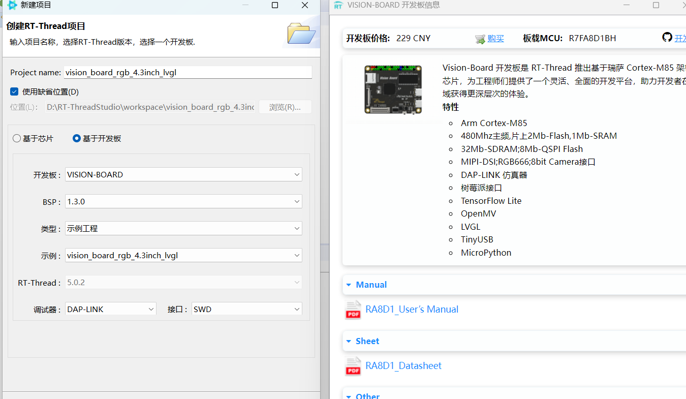 使用rtt 基于visionboard创建lvgl项目。