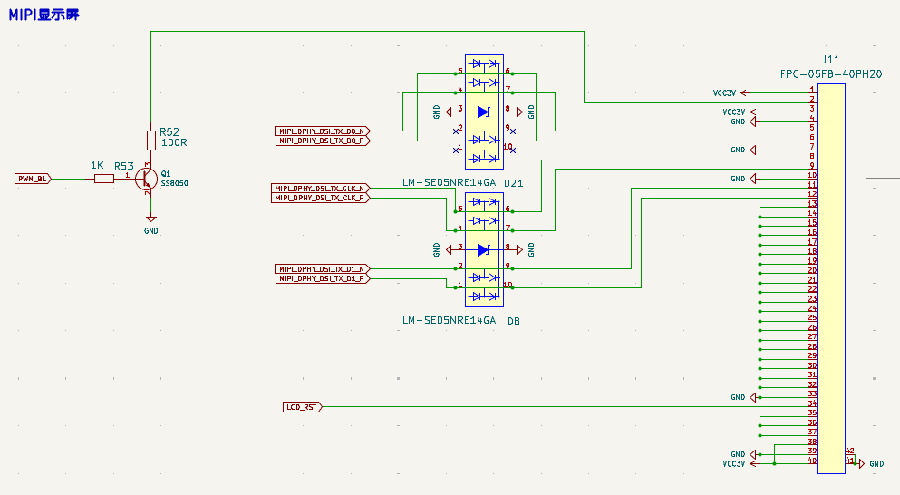 采用fpc连接器,方便接插,mipi差分线,静电防护设计,带背光控制