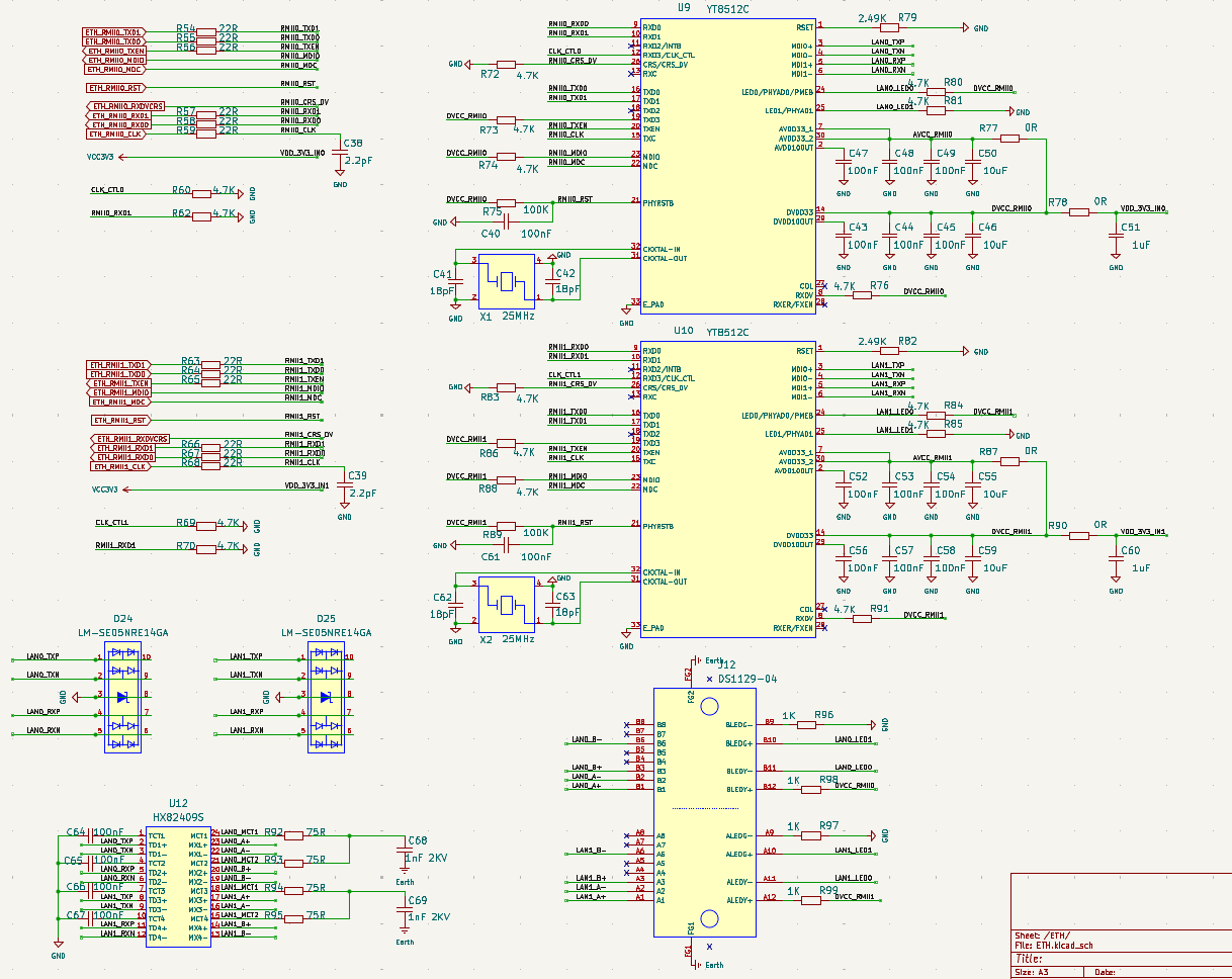 参考官方设计,选用YT8512C,低功耗单端口10/100 Mbps以太网PHY,支持MII和RMII接口。