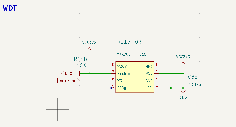 由于系统上电启动时间很长,不建议使用这个看门狗芯片;想实现硬件看门狗需使用特殊定制芯片,要求:启动时60s内不喂狗看门狗也不触发,过了60s后系统正常运转时几秒内喂狗一次,如果不喂狗就触发(调试时踩过的的坑,看门狗一直拉低reset脚,导致系统不启动)