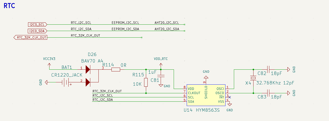 选用HYM8563S,I2C实时时钟/日历芯片钟,提供系统时间