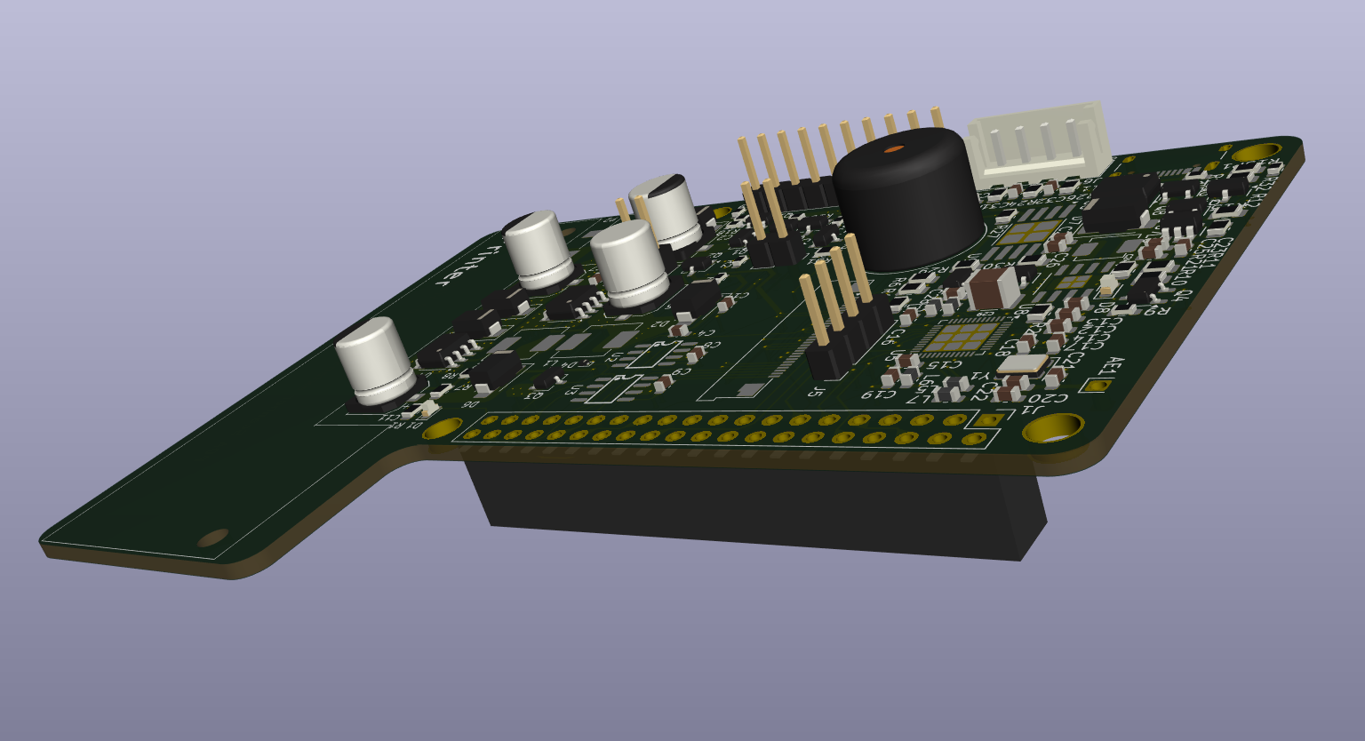 该PCBA为四层板,扩展板上预留有热敏打印机的放置位置,2.54mm2X20Pin排母可以直插VisionBoard主板的扩展接口,采用+12V电源供电,也可外接锂电池组输出+12V进行独立供电,预留有Type-C充电接口。