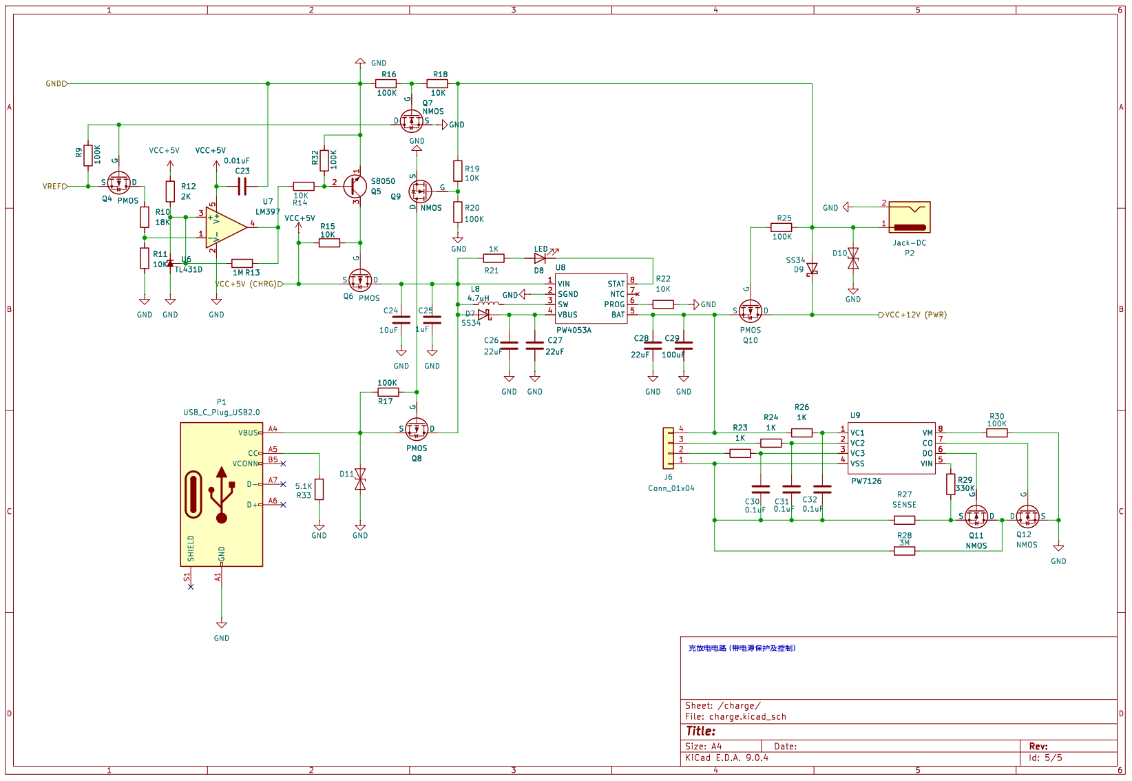 对于PDA扫描器这种长时间工作的移动终端来说,充放电方面的功能不可忽视,该扩展板的电源管理部分采用国产厂商自主可控充电管理芯片(5V充三串锂电池12.6V)PW4053A和PW7126保护芯片的经典组合方案的基础是增加了软硬件结合的充放电控制逻辑,采用可靠性强的逻辑互锁电路实现充放电过程切换的控制,从而形成一个功能完善的智能充电管理单元。