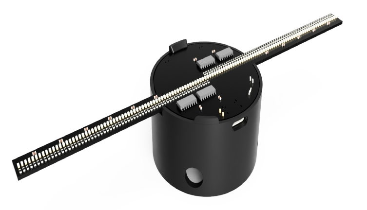 项目选择了 ESP32 模块作为显示器的大脑,因为它便宜、容易获得,而且功能强大。显示器将有两个旋转臂,每个旋转臂装有 64 个 LED,总分辨率为 128 像素。在 ESP32 的控制下,旋转臂将以恒定的速度旋转,LED 灯以精心安排的模式闪烁。通过这种同步方式,显示屏可以生成悬浮在半空中的图像或文字,带来流畅、连续的视觉体验。