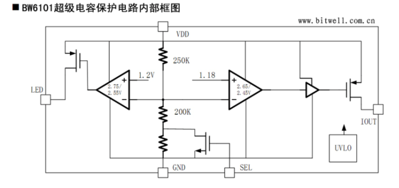 此方案的优点是电路结构非常简单,研发成本也很低。先前可使用TL431电压基准模块进行简单搭建。后续随着BW6101超级电容保护芯片的推出,此方案更加简单廉价。