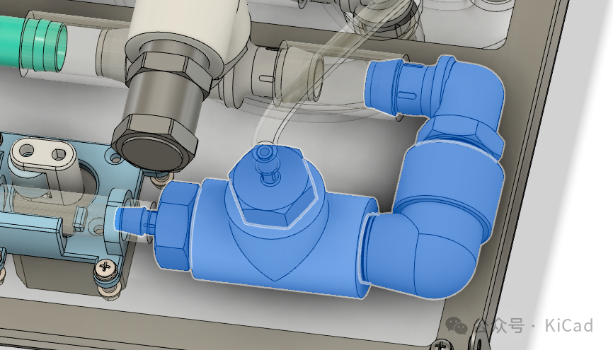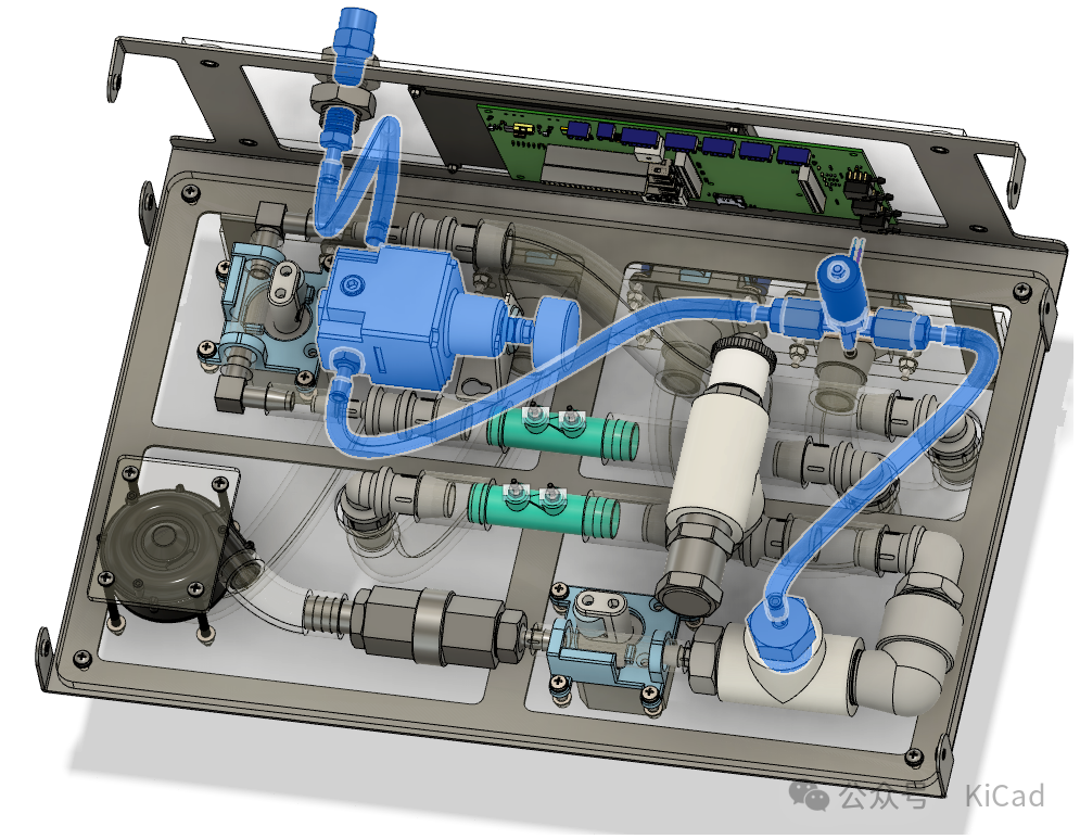 监测吸入/呼出流量的压差 (dP) 传感器也安装在主板上。这些都是汽车压差传感器,价格便宜,在全球范围内大量供应。它们监测两个文丘里流量传感器之间的压差以及病人的输送压力。它们输出模拟电信号,该信号在主板上经过滤波和调节后传输到 STM32 循环控制器。它们通过 2.5 毫米软管与通气管气动连接。在进行单端压力测量时,两个压力端口中只有一个通过 2.5 毫米软管连接,第二个端口以大气压力为基准。