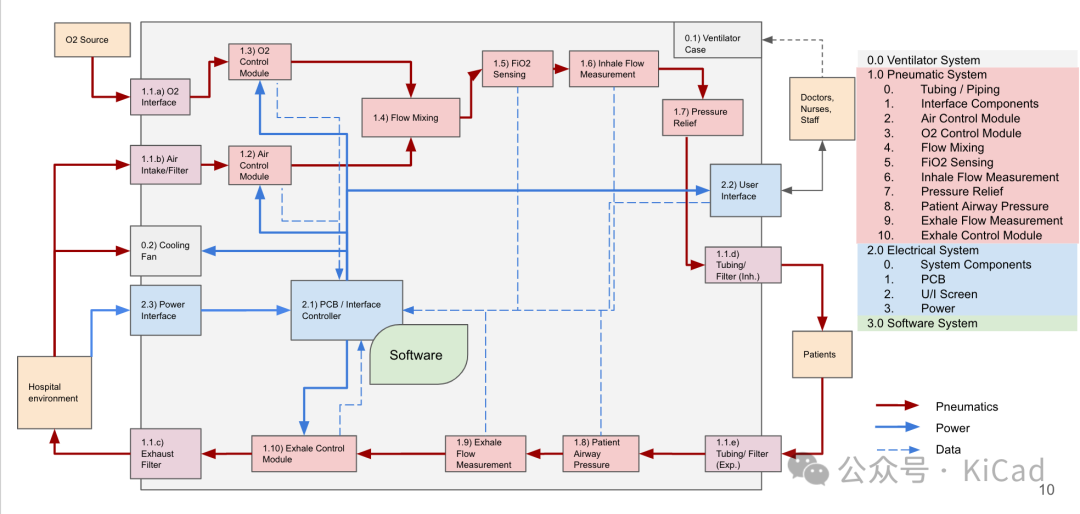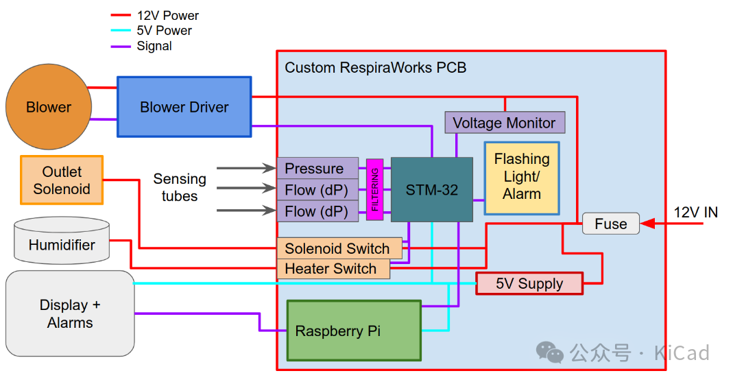 RespiraWorks 呼吸机有四个主要子系统,其接口紧密相连: