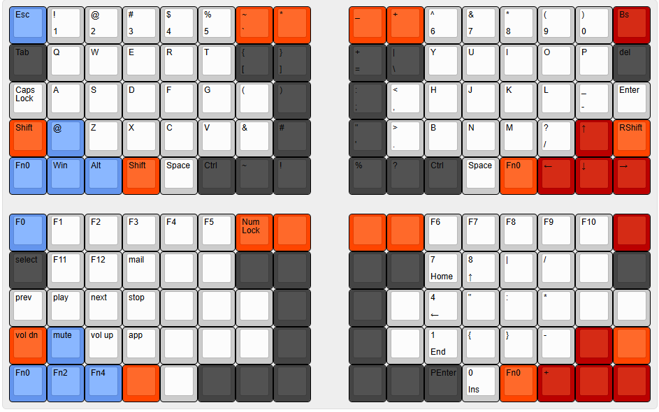 80键分体键盘,采用非常便宜的单片机和USB HID接口芯片。目的就是打造一款低成本的机械键盘DIY方案。