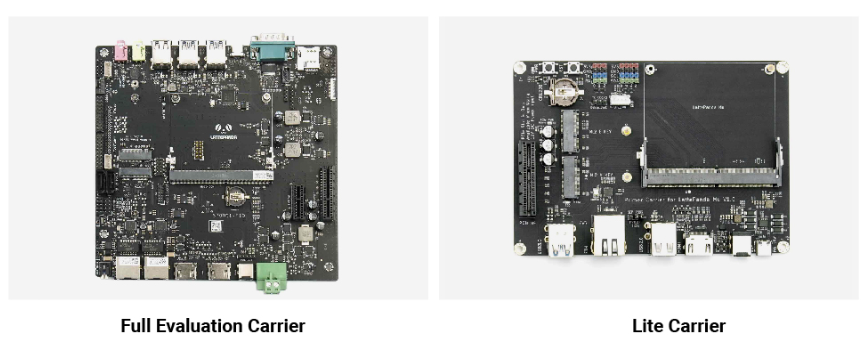 DFRobot 为 LattePanda Mu 提供了一个轻型载板(Lite Carrier),为快速设计验证提供了一个具有各种接口的综合开发平台。此外,还提供全功能评估载板,暴露 LattePanda Mu 的所有引脚,用于广泛的硬件和软件测试。