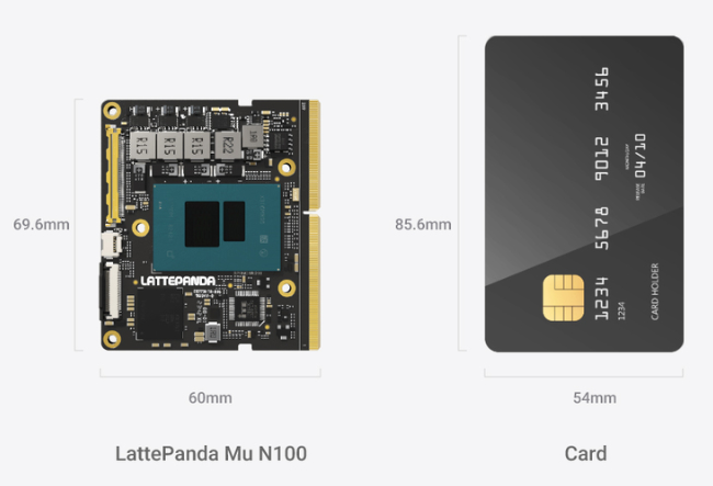 LattePanda Mu x86 计算模块的尺寸只有 69.6 毫米 x 60 毫米,非常小巧,可以集成到空间有限的设备中,在不占用空间的情况下提供强大的计算能力。