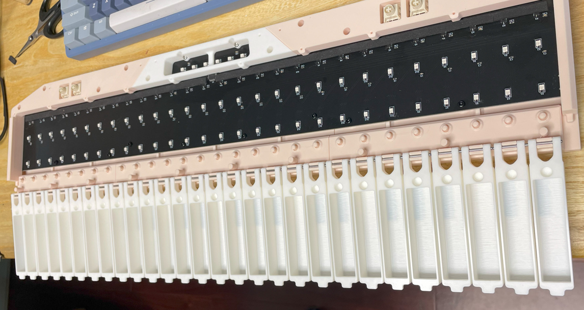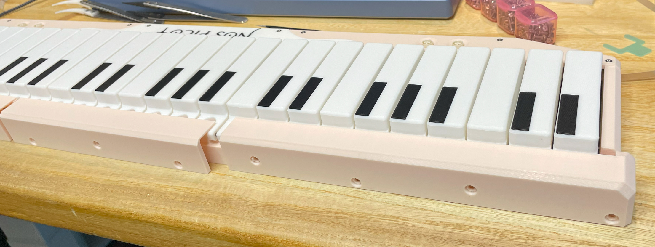 Key.3mf。打印 28 个按键,其中 8 个为全白,20 个为白色底部带黑色顶部(“黑键”)。按键需要多色打印,或者你手工涂黑顶部黑键部分。