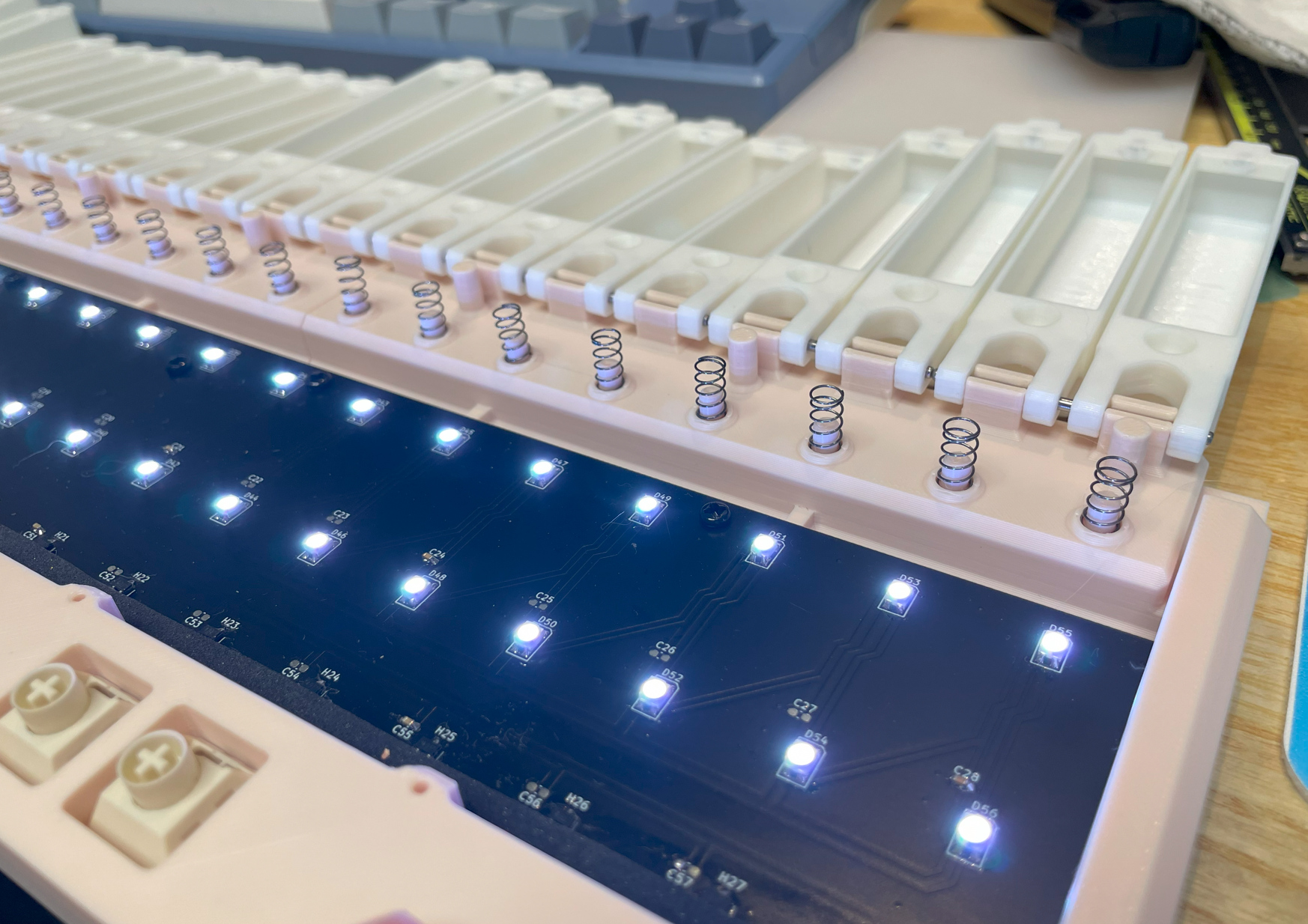 calibrate travel命令校准按键行程,不要忘记在执行命令 1 秒后温柔的按下所有按键。在底座部件的底部贴上硅胶自粘防滑垫。
