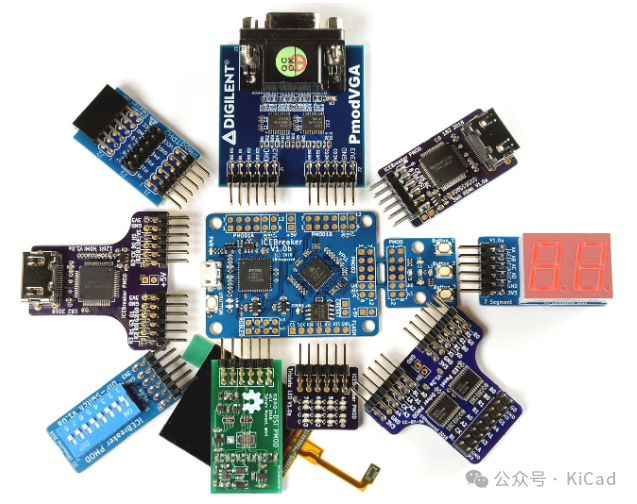 该开发板的主要应用领域是使用 Yosys、nextpnr、icestorm、iverilog、symbiflow 等开源 FPGA 设计流程的教育或研讨会场景。这意味着电路板的成本必须很低,而且要有一套很好的功能,以便设计出有趣的课程和 Workshop。iCEBreaker 可通过其 Pmod 连接器轻松扩展,因此您可以使用大量第三方 Pmod 模块,以及我们专门为其设计的几个新 Pmod。