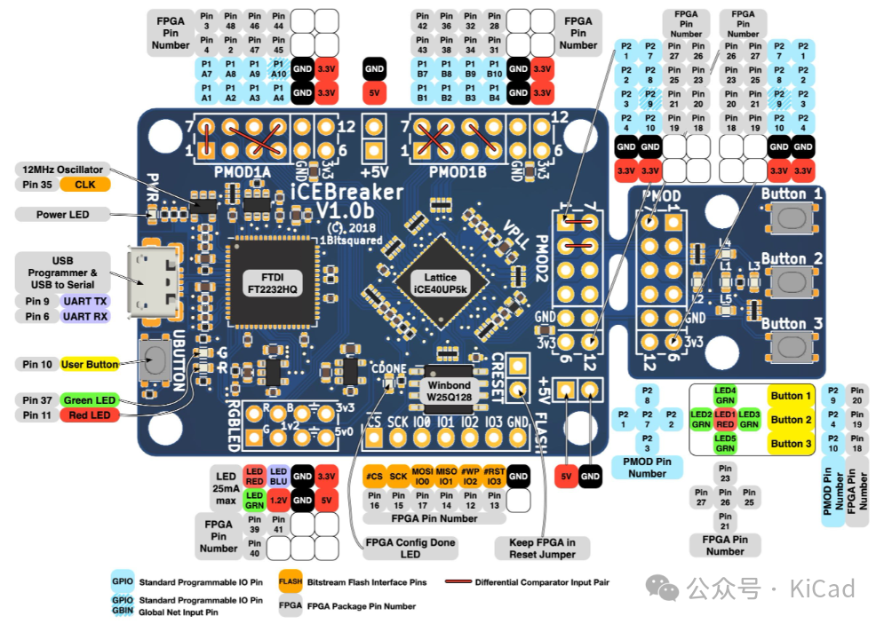 iCEBreaker FPGA 开发板是一款低成本、开源的 FPGA 教育开发板。