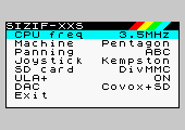 你可以使用上下方向键浏览菜单,使用回车键或左右方向键修改数值。支持 Kempston、Sinclair、Cursor 以及 QAOP 键位控制。