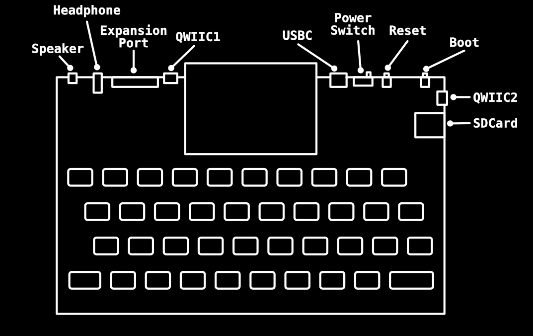 扩展端口,可拆出显示屏、SD卡、扬声器和四个GPIO引脚