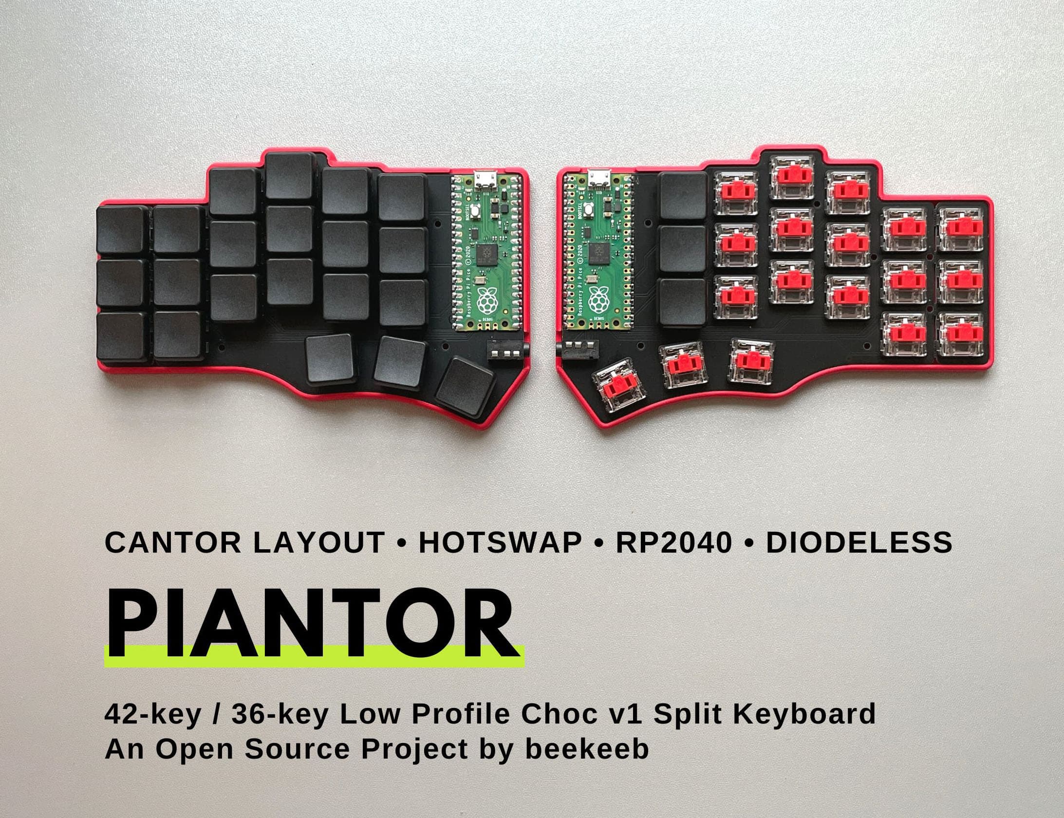 这是一个由 beekeeb 开发的开源分体式人体工学机械键盘项目,面向入门级用户,主打易焊接、无二极管设计和紧凑布局。