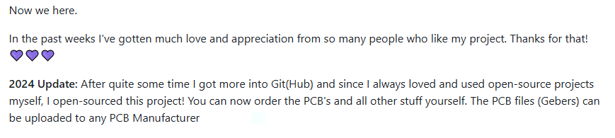 开源属性:项目完全开源,爱好者可以在 Github 上找到完整的 PCB 文件、代码和构建图纸,门槛极低。