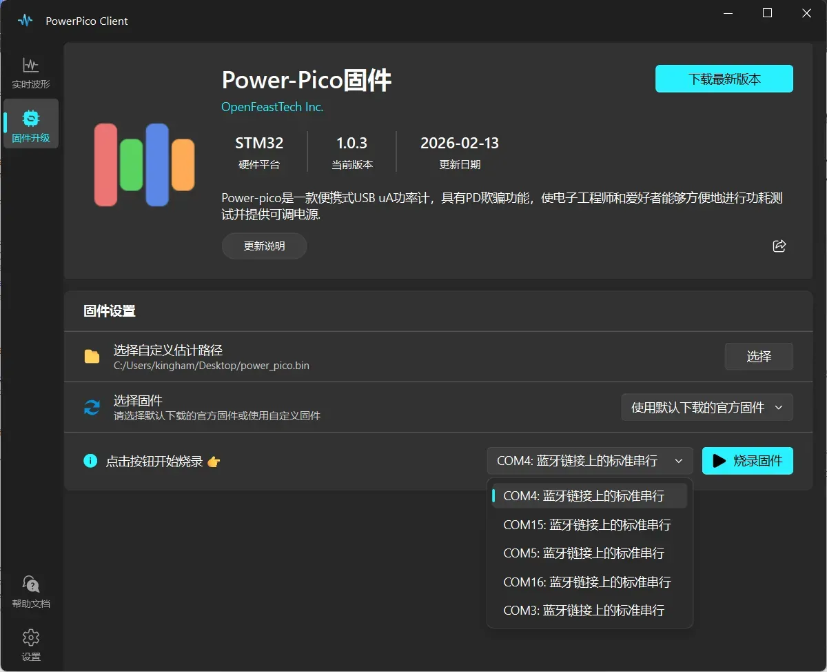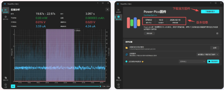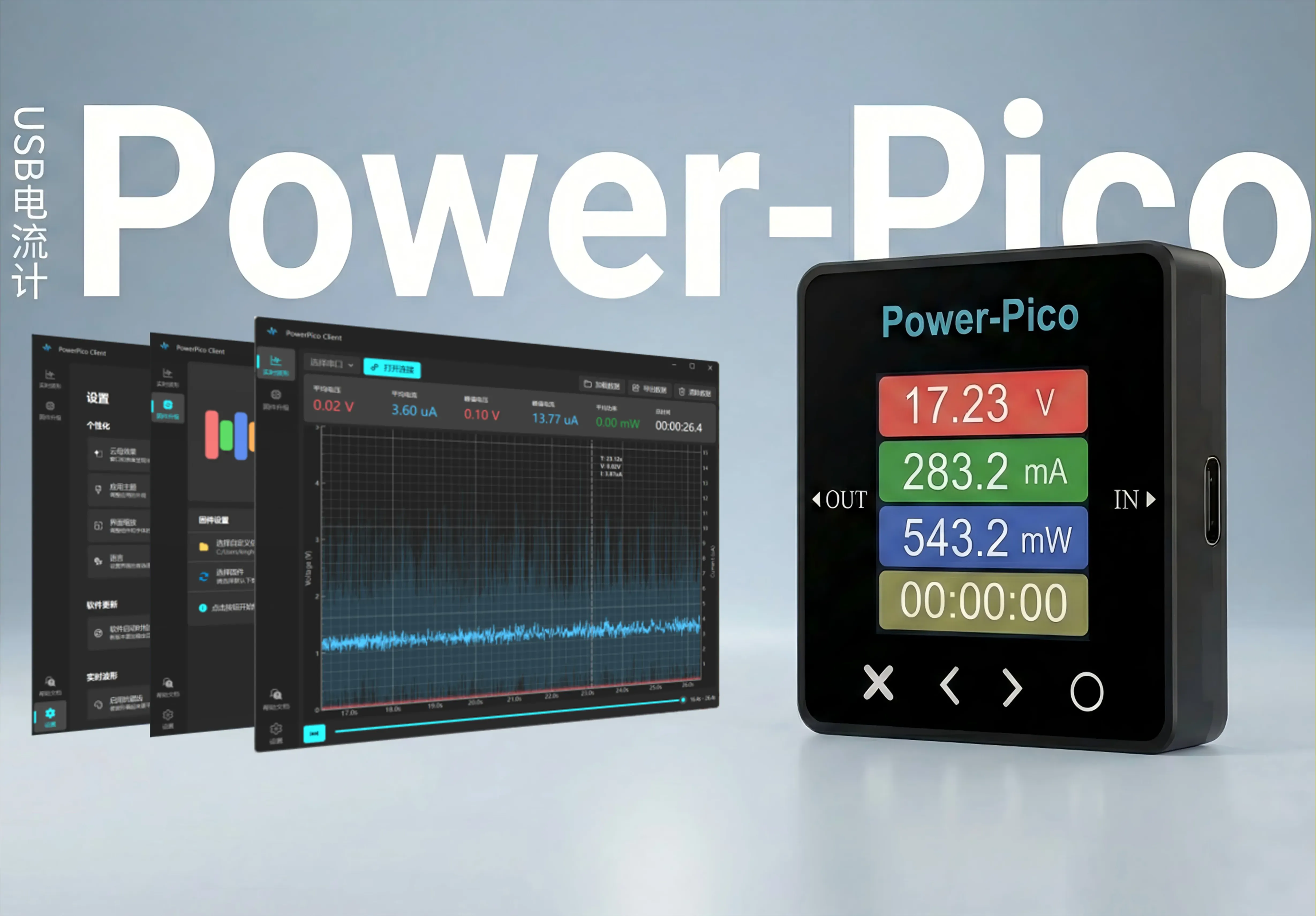 上位机支持:配合 Power-Pico Client 客户端,支持波形实时监控与在线升级。
