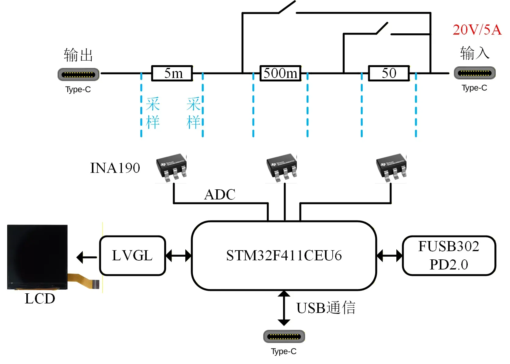 物料+PCB | 芯片/电阻/电容等物料 (STM32, INA190, FUSB302等) | 1 套 | 4层板,外1盎司,内0.5盎司,JLC04161H-7628,免费20%阻抗,1.6mm板厚。 | |