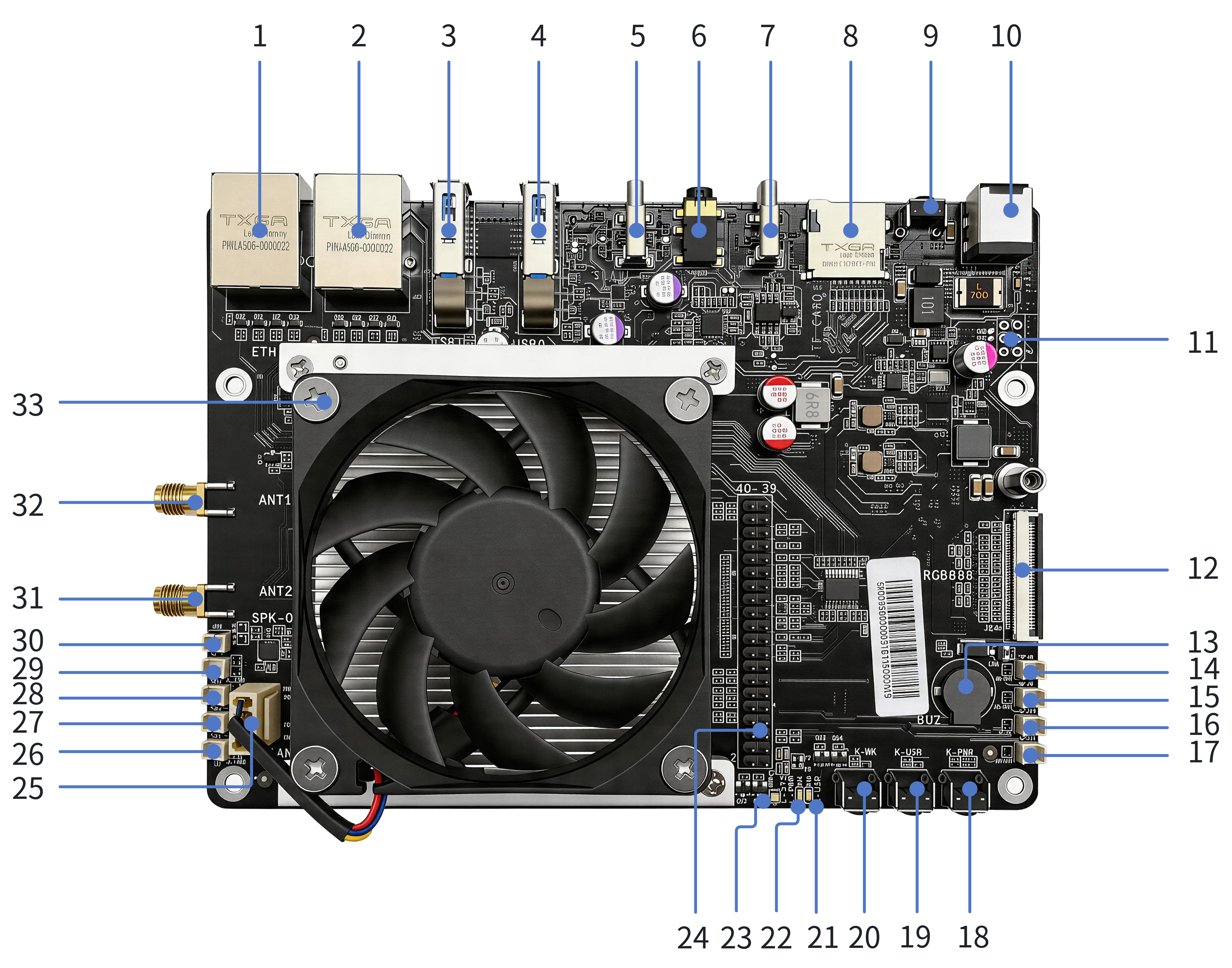 1 | 千兆以太网口-ETH1 | 13 | 蜂鸣器 | 25 | 冷却风扇接口 |