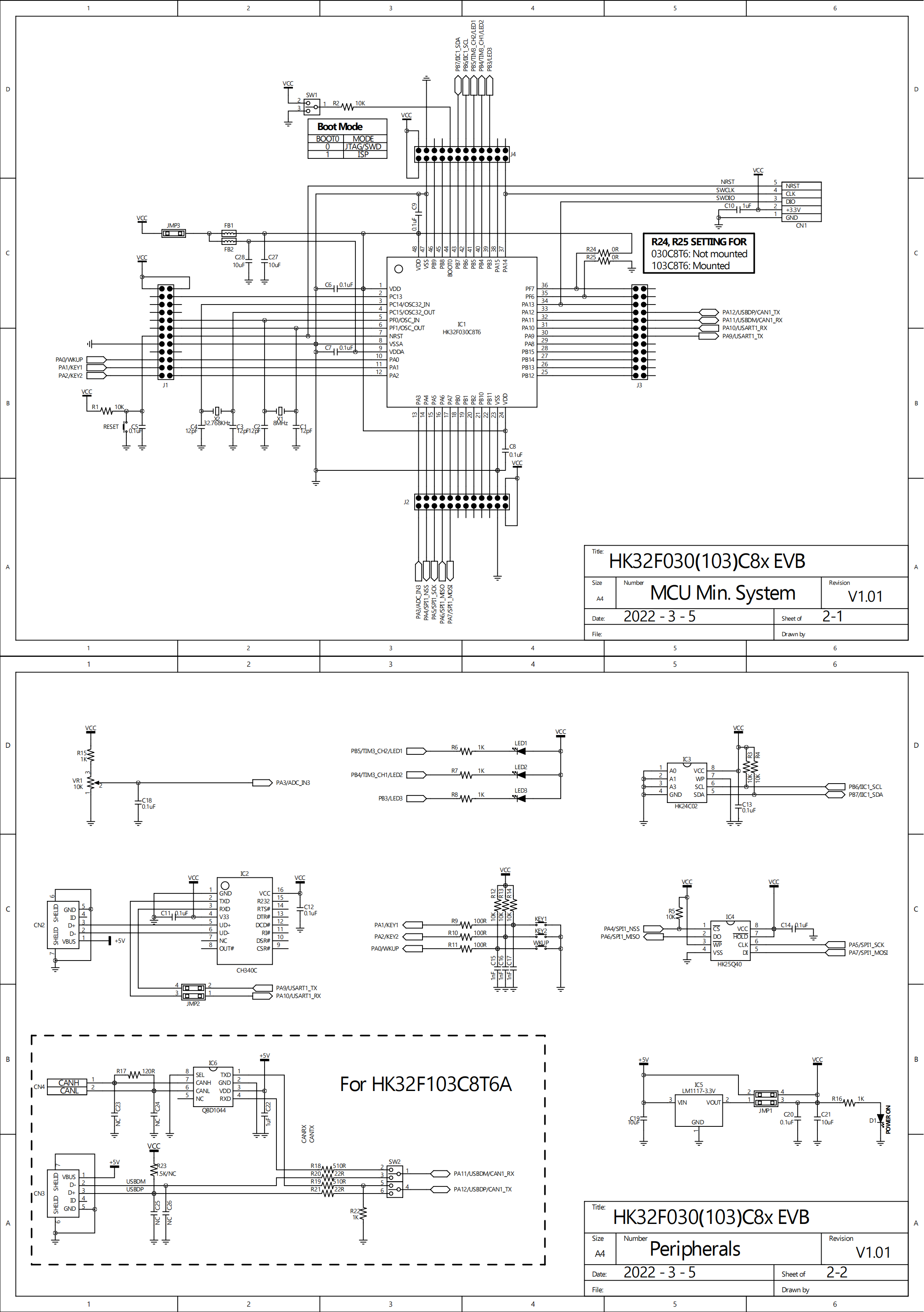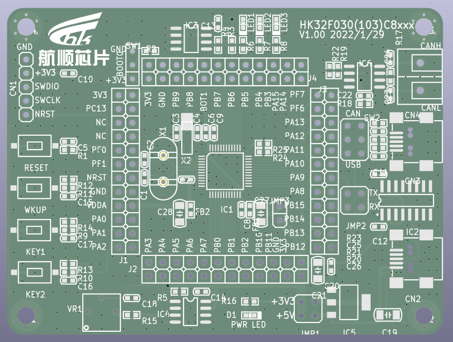 · 主控芯片:HK32C030 系列(常用 HK32C030C8T7/LQFP48、HK32C030K8U7/QFN32)。